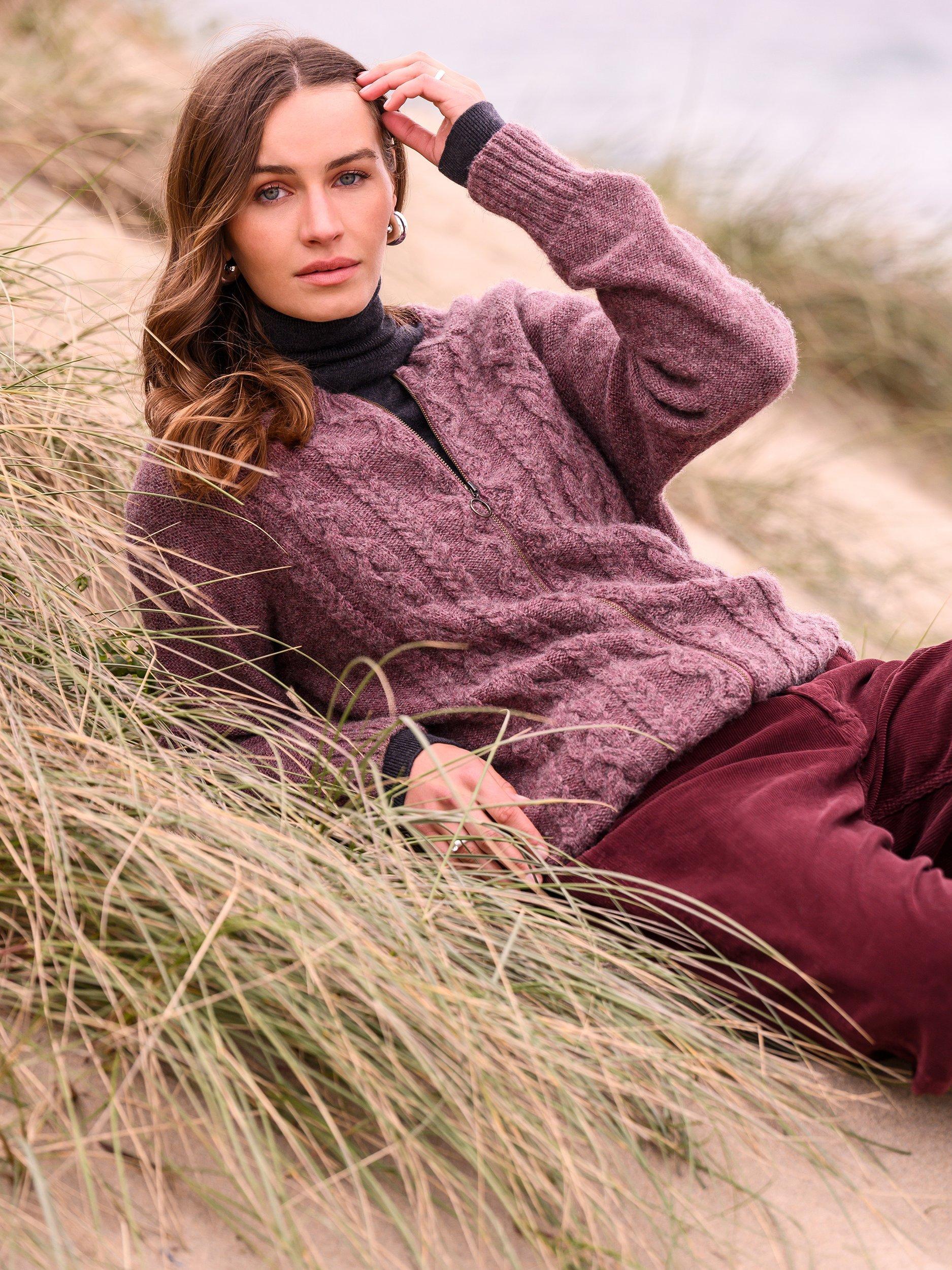 Celtic Co. British Wool Cable Knit Cardigan Dark Rose Very well made.