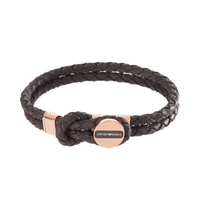 Men s Bracelet Emporio Armani Black Leather Stainless Steel EGS1624001 EGS2797040 Very well made.