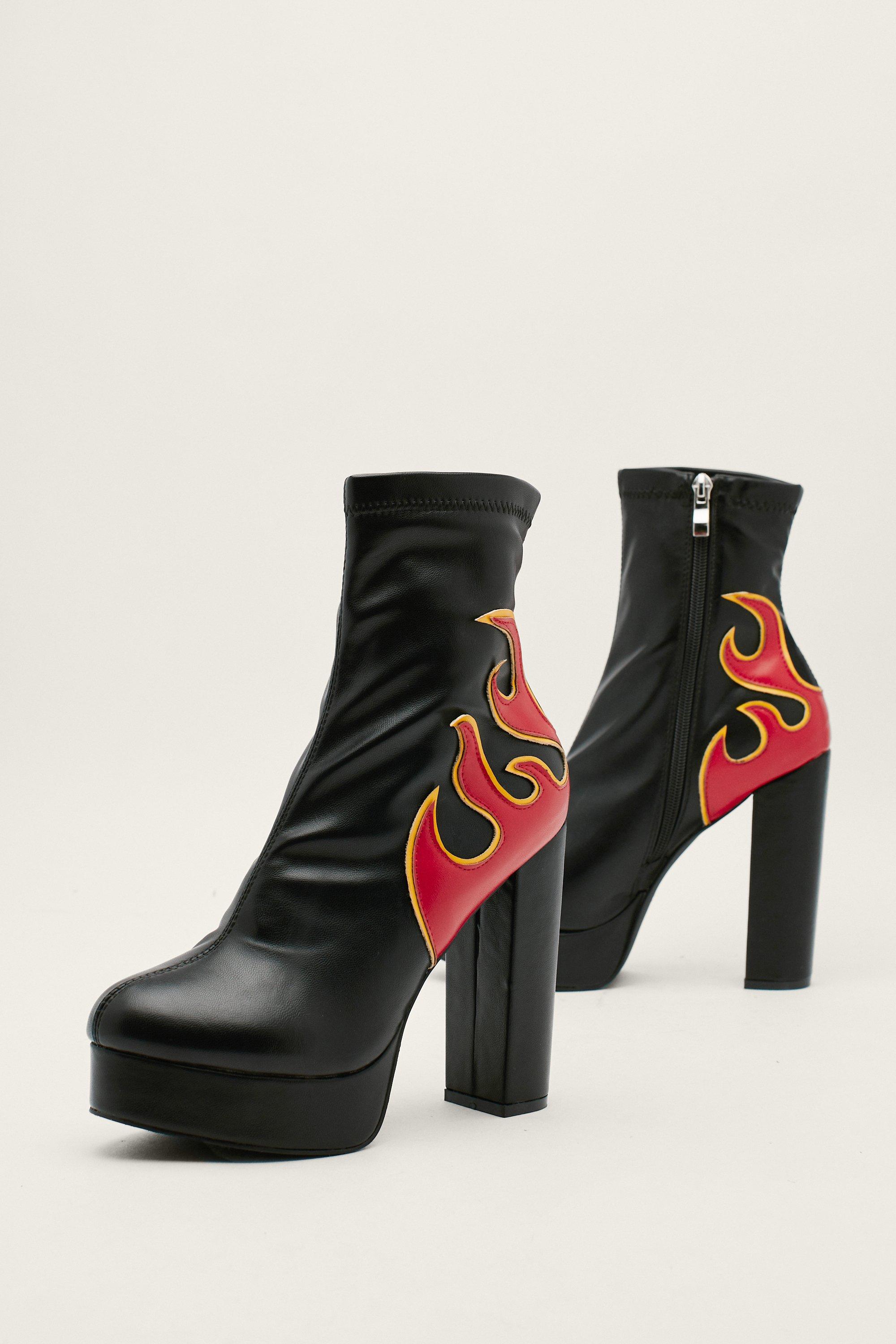 Faux Leather Flame Platform Ankle Boots Very well made.