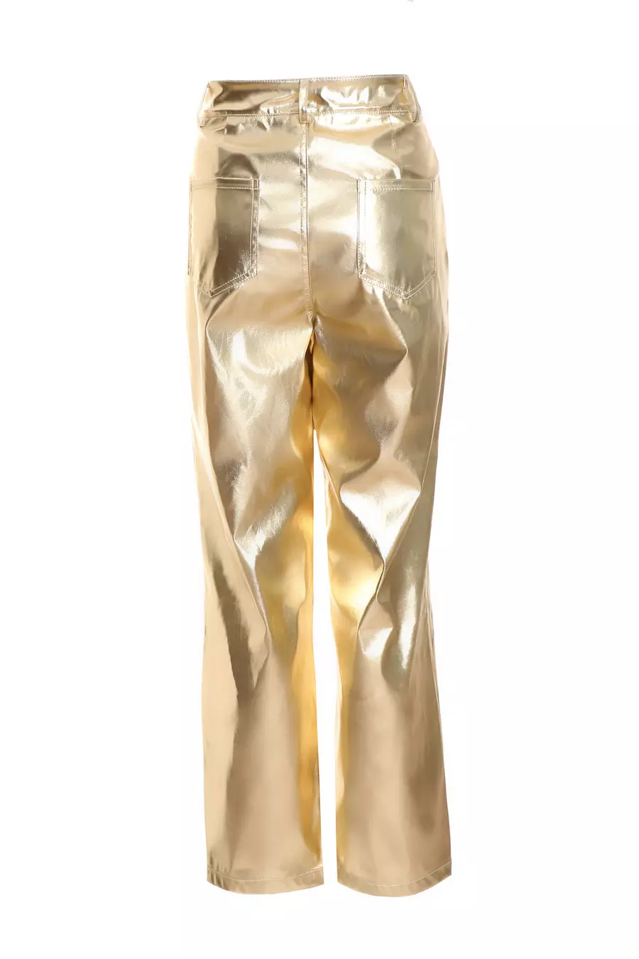 Gold Metallic PU Straight Leg Tailored Trousers Bottoms PrettyLittleThing Very well made.