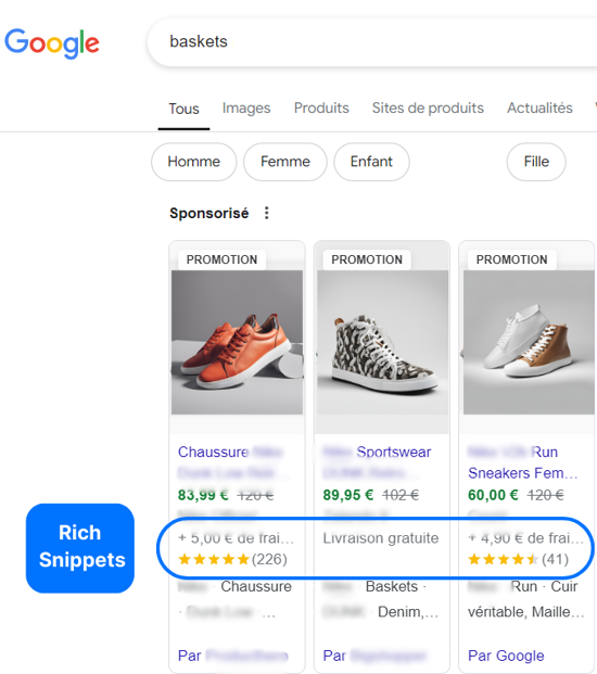 Les produits en promo mis en avant dans les annonces Google Shopping Very well made.