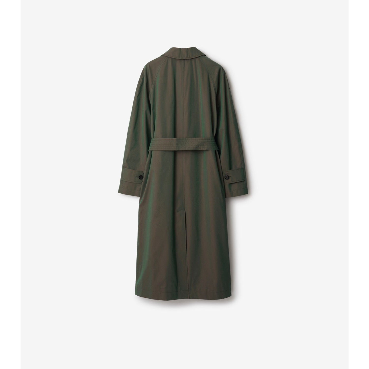 Long Cotton Car Coat in Antique green Women Burberry Official Very well made.