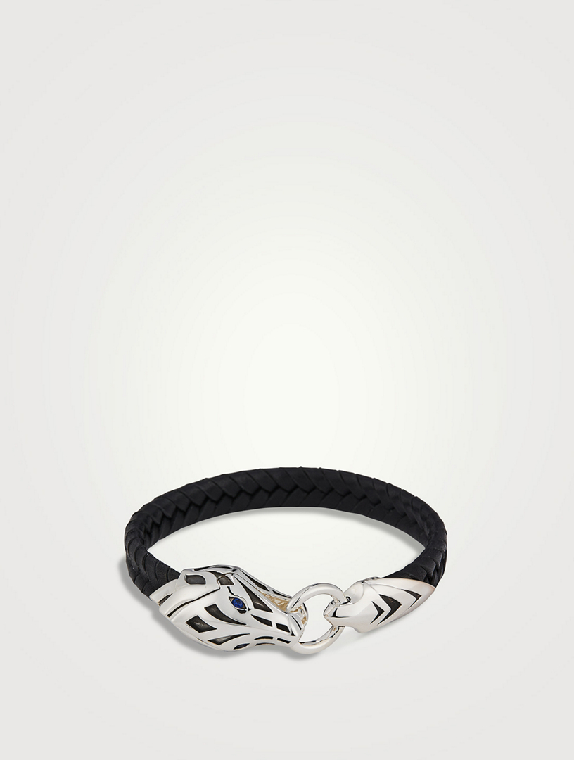 John Hardy sterling silver and leather Naga sapphire bracelet men Blue Sapphire Sterling Silver Leather L Very well made.