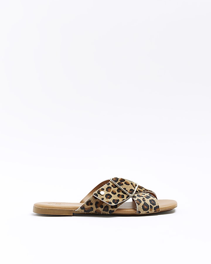 Brown animal print flat sandals River Island Very well made.