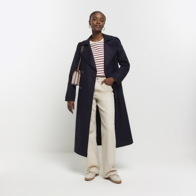 Navy Double Breasted Wool Blend Trench Coat River Island Very well made.