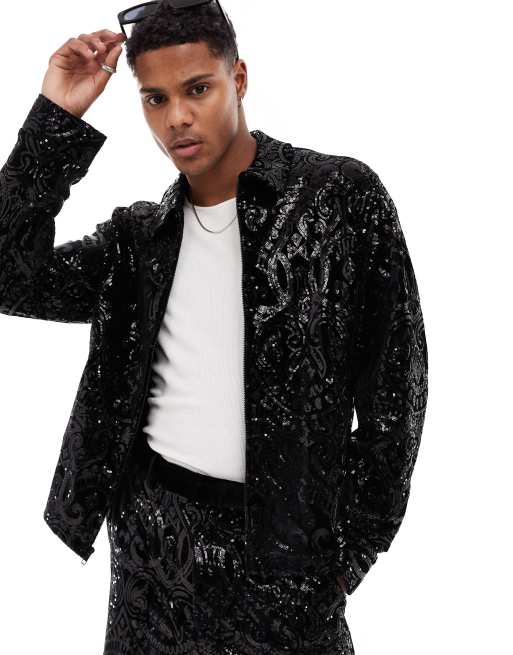 ASOS DESIGN harrington jacket in all over sequin detail Very well made.