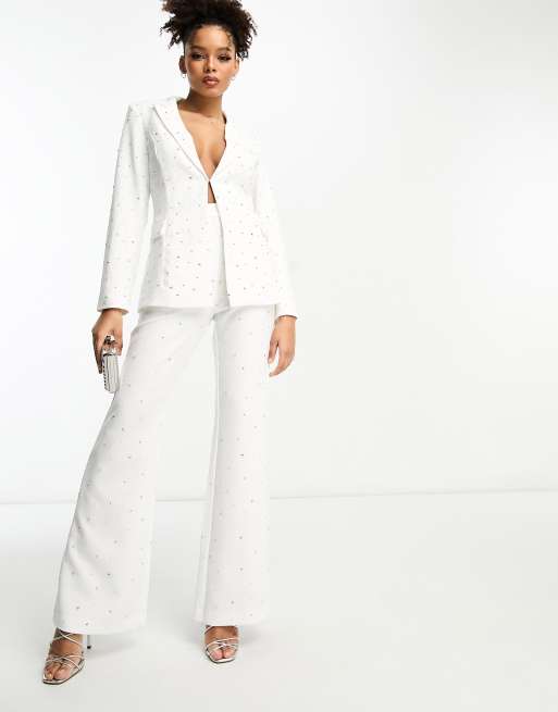 Rare London diamante embellished blazer and pants set in white ASOS Very well made.