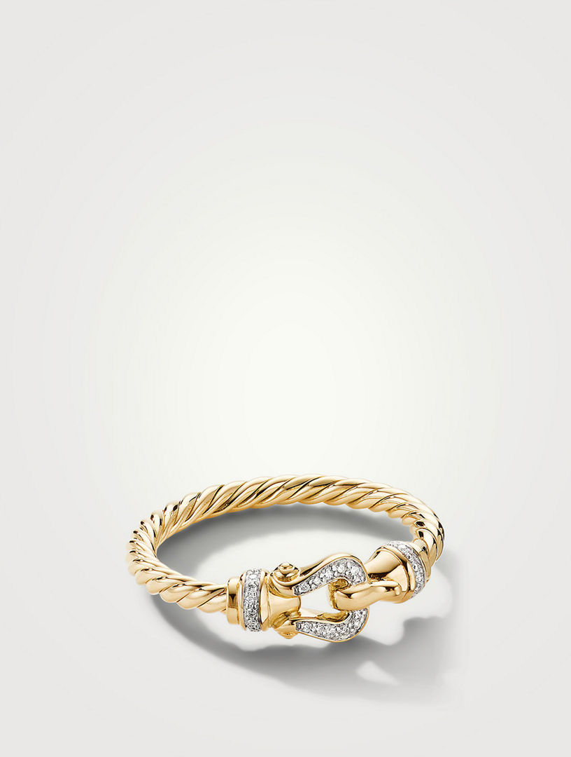 DAVID YURMAN Petite Buckle Ring In 18k Yellow Gold With Pave Diamonds Very well made.