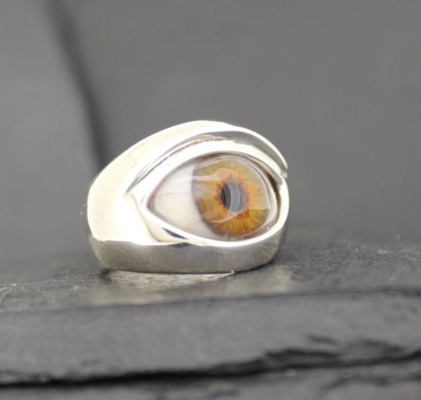 Sterling Silver Prosthetic Glass Eye Eyelid Ring Freedom Jewelry USA Very well made.