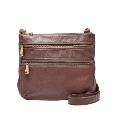 Fossil Explorer Brown Leather Crossbody Handbag 3 Zipper Pouches Classic Purse Very well made.