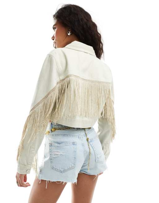 Giacca in jeans con pizzo e frange Very well made.