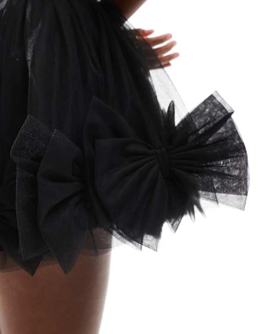 Lace Beads Gonna corta in tulle nera con fiocchi Very well made.