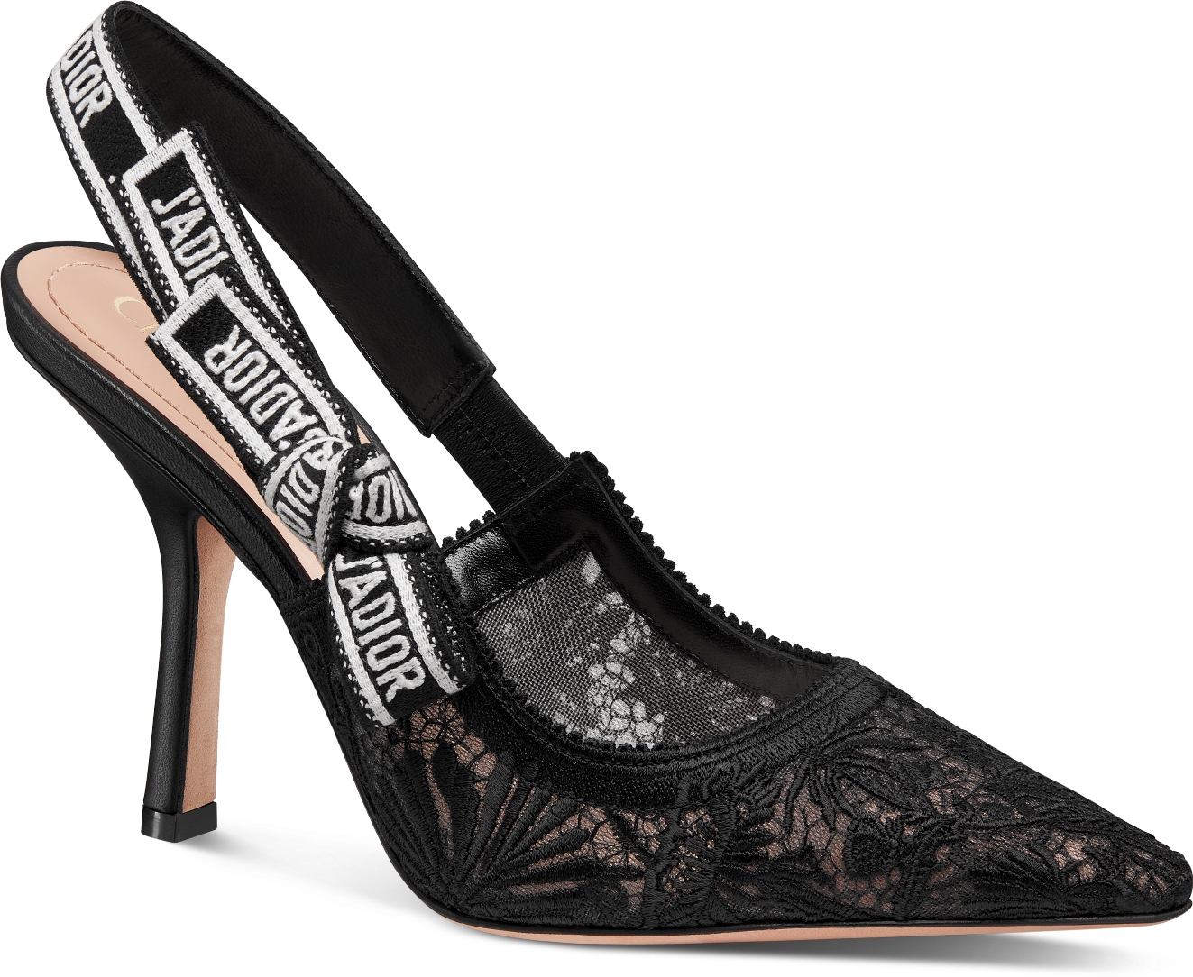 DIOR J Adior Slingback Pump Transparent Mesh With Black Dior Chardons Embroidery Size 36 Women Very well made.