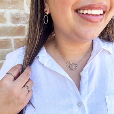 Connected Circles Necklace Ring and Ear Posts Very well made.