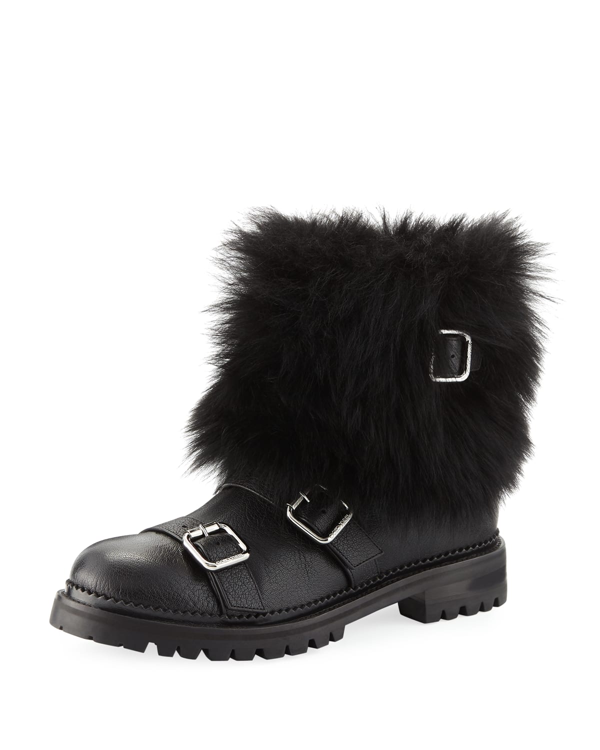 Jimmy Choo Hank Triple Strap Moto Boots with Fur Very well made.