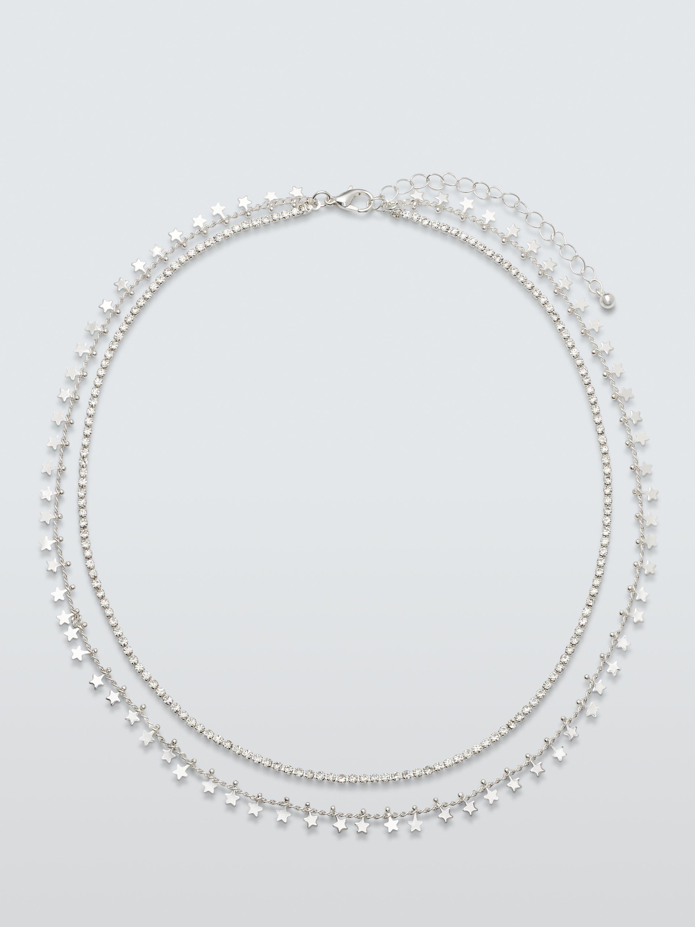 John Lewis Star Diamante Layered Necklace Silver Very well made.