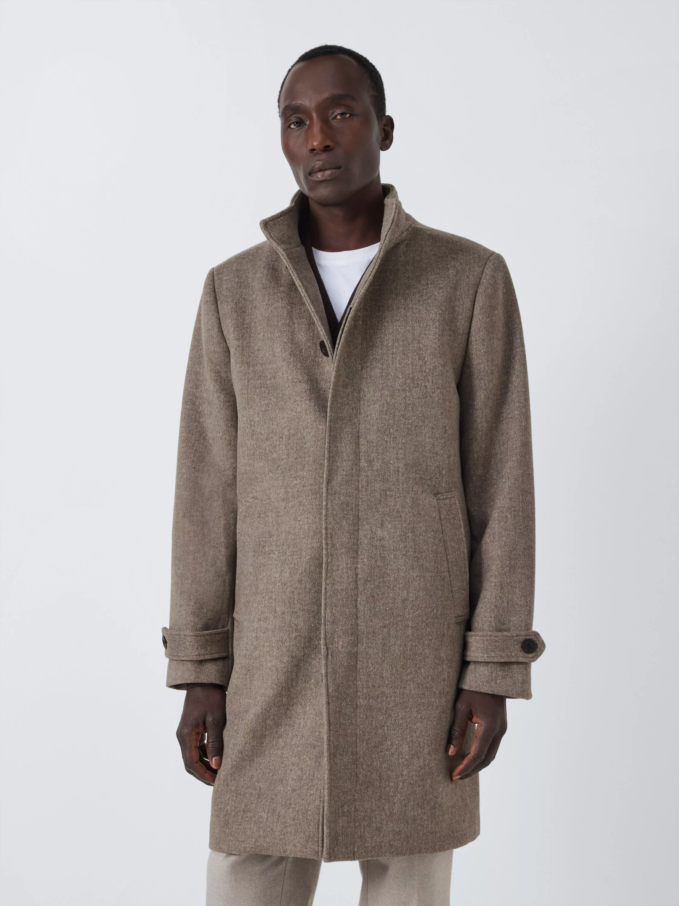 John Lewis Wool Blend Funnel Neck Coat Brown Twill Very well made.