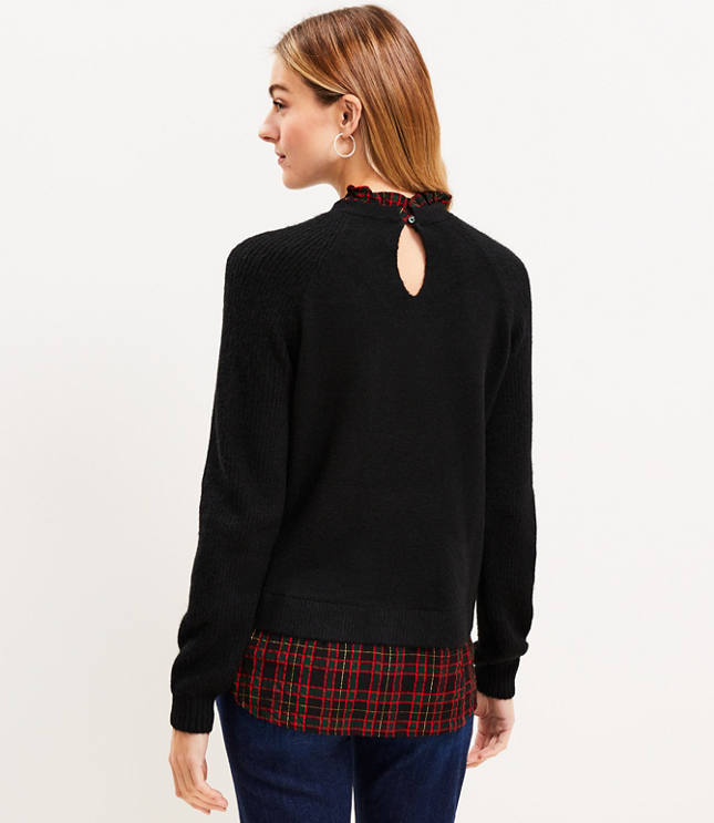 Plaid Layered Mixed Media Cable Sweater Very well made.