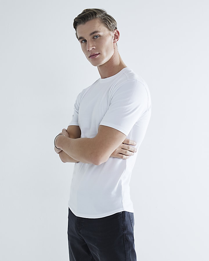 Basic Muscle Fit Curved Hem T Shirt boohooMAN IE Very well made.