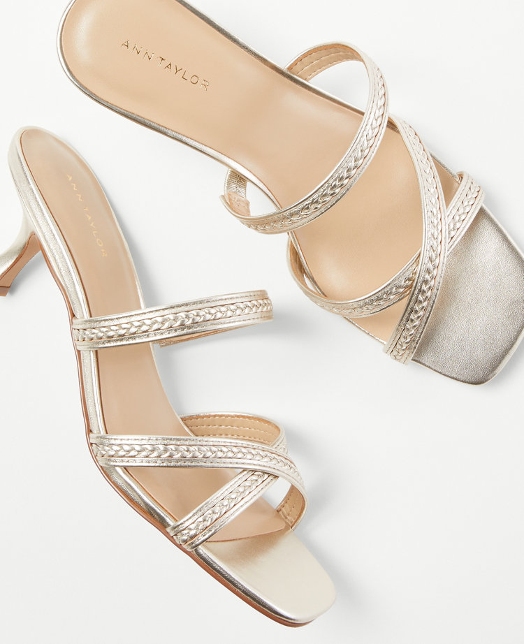 Ann Taylor Studio Collection Crystal Linen Skinny Strap Sandals Size 10 Ivory Linen Women s Very well made.