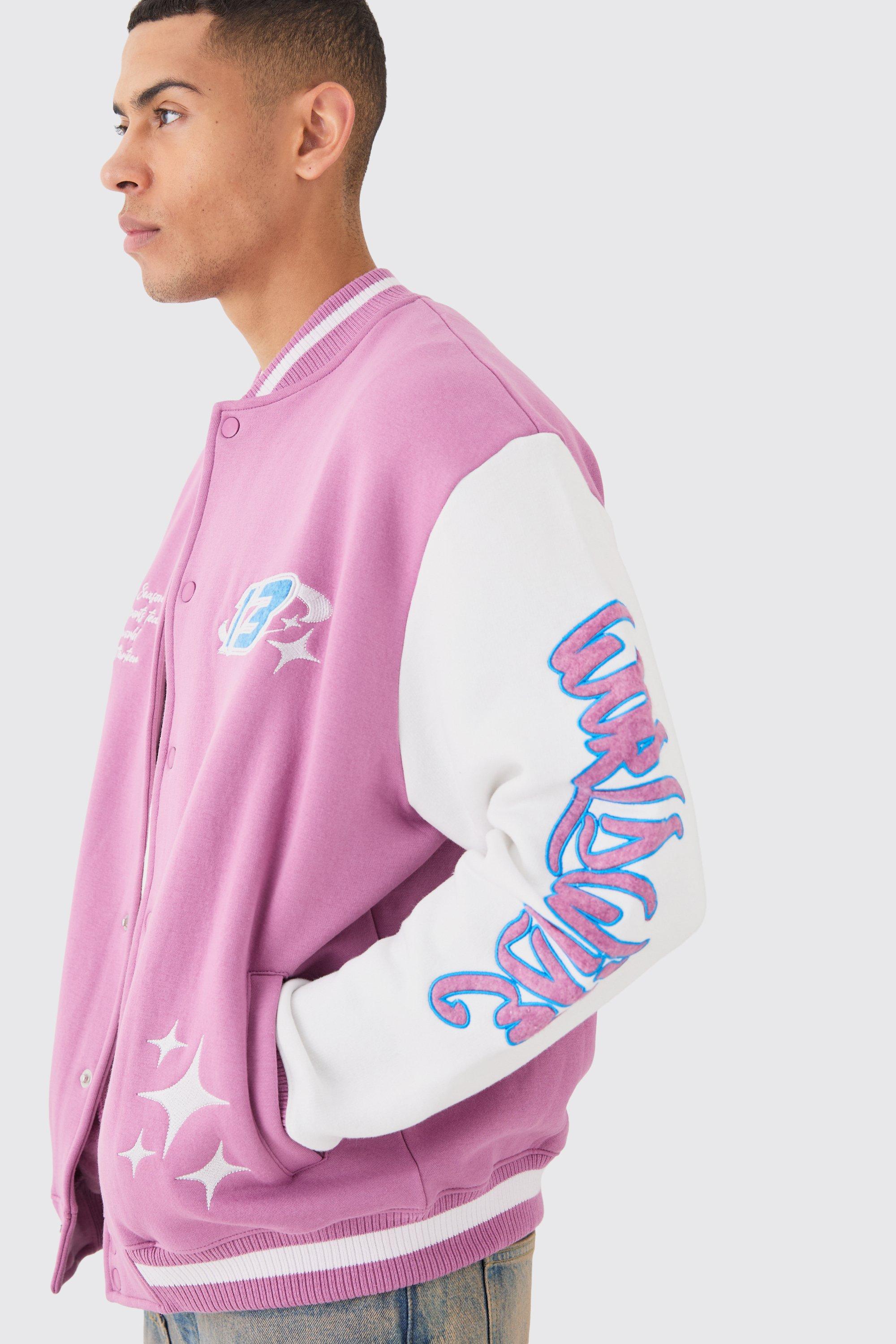 Oversized Worldwide Applique Jersey Bomber Jacket Very well made.