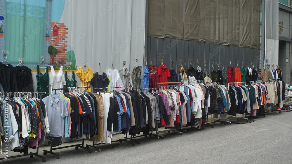 person looking for used clothes for sale in the flea and used clothing market Photos Adobe Stock Very well made.