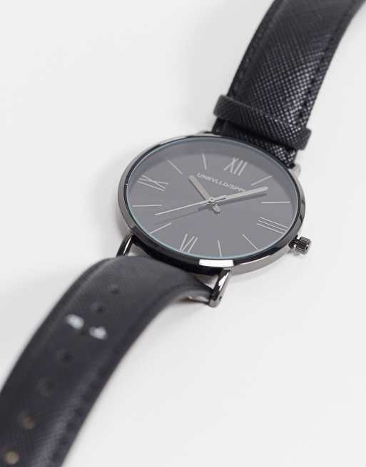 ASOS DESIGN unisex classic watch with monochrome face and faux leather strap in black Very well made.