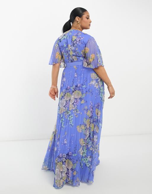 ASOS DESIGN Curve exclusive pleated maxi dress with kimono sleeve and tie waist in blue floral print Very well made.