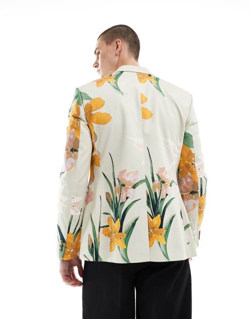 ASOS DESIGN slim floral printed blazer in white ASOS Very well made.