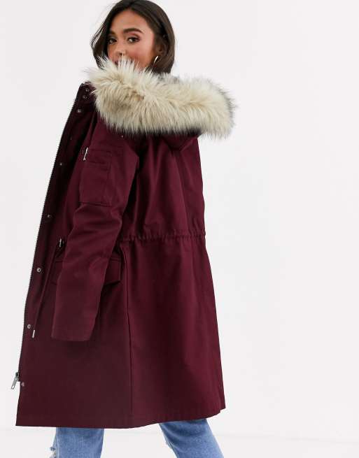 ASOS DESIGN parka with detachable faux fur liner in oxblood Very well made.