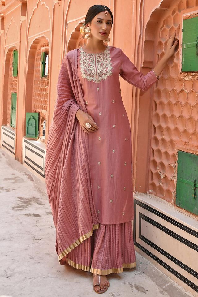 Buy JANASYA Pink Embroidered Polyester Round Neck Women s Salwar Suit Shoppers Stop Very well made.