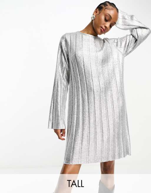 4th Reckless Tall exclusive metallic tie back mini sweater dress in silver ASOS Very well made.