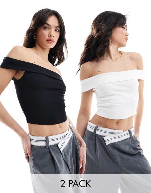 Bershka 2 Pack Fold Over Bardot Tops in Black White Very well made.