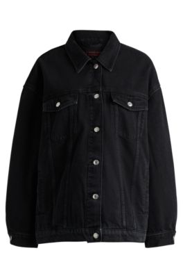 HUGO Oversize fit jacket in black denim with fringing Very well made.