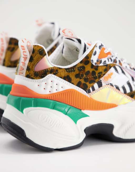 Buffalo Sneakers chunky bianche e leopardate Very well made.