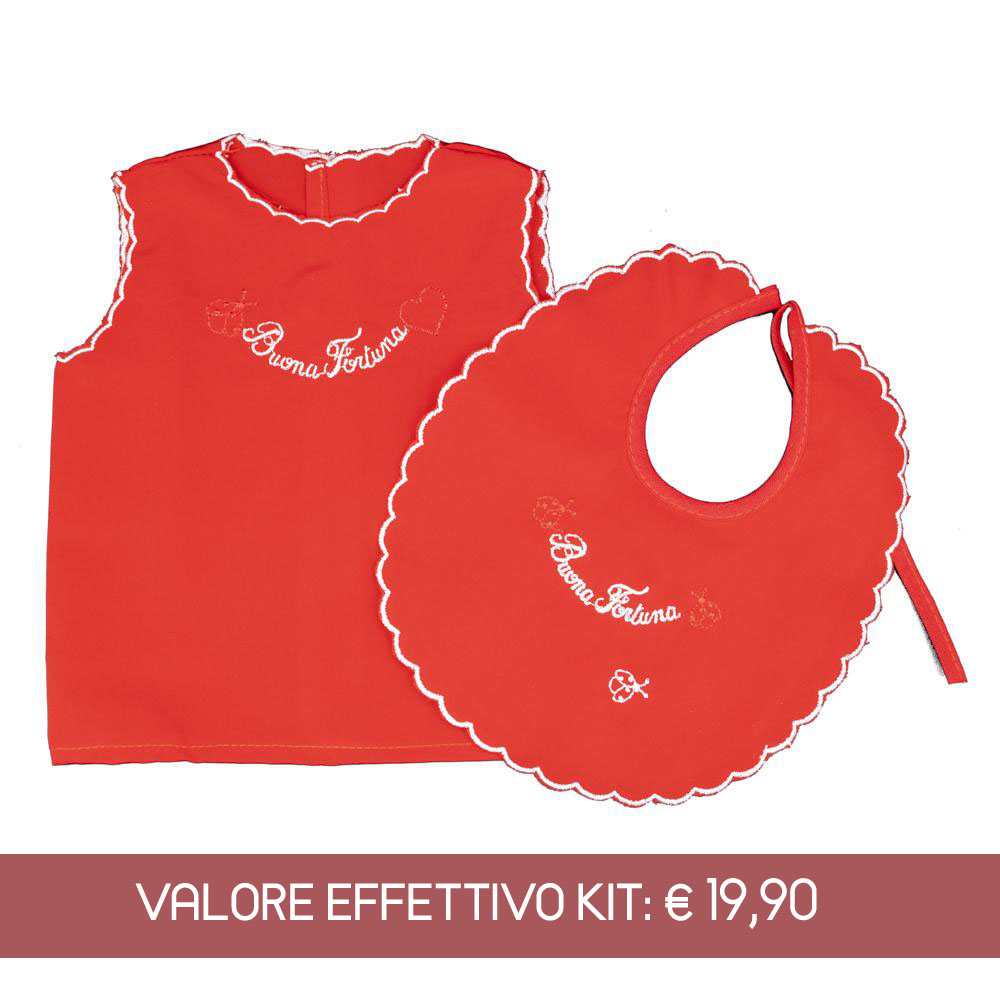 Camicino della fortuna e bavaglino seta rosso Say Mooom Very well made.